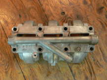 (上図)各箇所を規定トルクでボルト締め付け後、 (下図)ベアリングキャップブリッジを組付け。 やはりこれも規定トルクでボルト締め。 さらにクランク軸方向遊びを点検。(規定トルクを 怠るとボルト破損やエンジンにゆがみが生じる) |