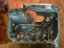 オイルストレーナーを組付け後、シール剤を 塗布してオイルパンを接着。 規定トルクでボルト締め付け。 とりあえず第一段階終了。 |