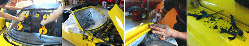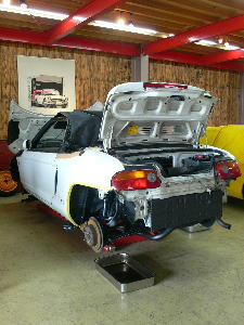 ■ S-2000事故車。鈑金塗装、エンジンマウント交換の為、エンジンを下ろす。